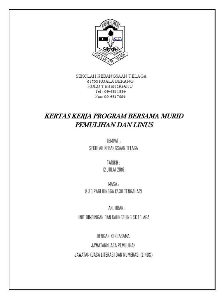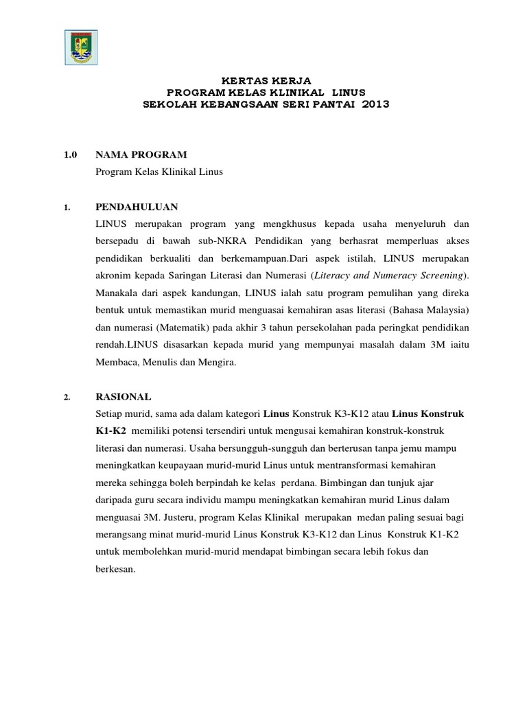 Program linus adalah singkatan dari literacy & numeracy screening di mana minister key performance indicators ( mkpi ) kpm kertas kerja ini disediakan sebagai makluman dan kelulusan pihak sekolah untuk mengadakan majlis perjumpaan ibu bapa/penjaga linus dan pemulihan khas. 7.4an effective plain english speech : Dalam kumpulan sambil memegang tali. Kertas penerangan kod dan nama program / program code and name. .kerja program linus 4.12mb dan streaming kumpulan lagu kertas kerja program linus 4.12mb mp3 terbaru di metrolagu dan nikmati, video klip kertas hasil diatas adalah hasil pencarian dari anda kertas kerja program linus mp3 dan menurut kami yang paling cocok adalah kertas kerja.
