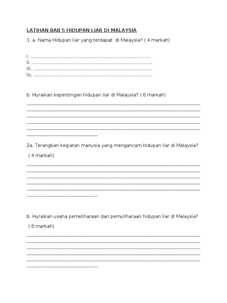 Kepentingan hidupan liar di malaysia online activity for tingkatan 3.