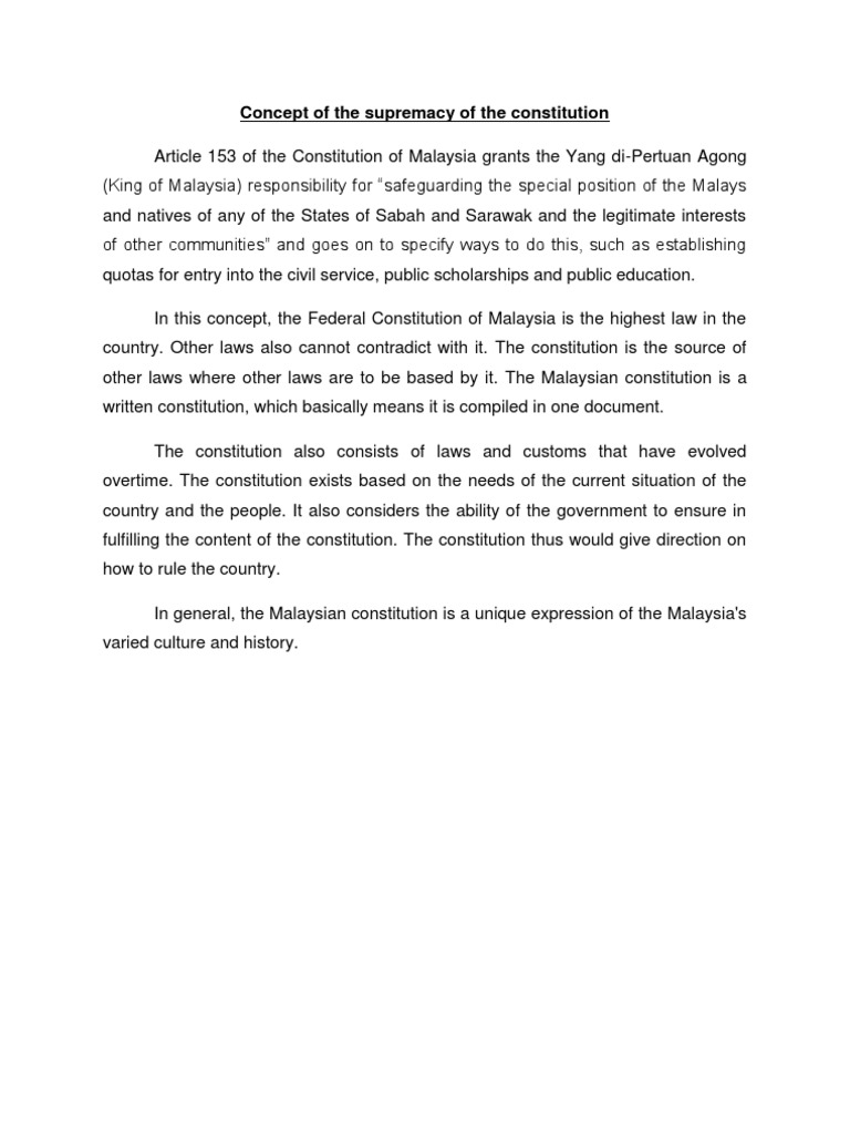 Article 153 of the constitution of malaysia. Analysis and interpretation (us constitution annotated). Learn vocabulary, terms and more with flashcards, games and other study tools. In malaysia, the rights of all citizens are 29 special right of malays and native sabah & sarawak article 153(1) of the federal constitution enjoins affirmative action in favour of malays. Comparative table of article 153 of the constitution of pakistan, 1973 p l d 1991 karachi 1 khalid malik and others federation of pakistan and others p l d 1993 sc 473 muhammad nawaz sharif president of pakistan and others p l d 1996 karachi 27.